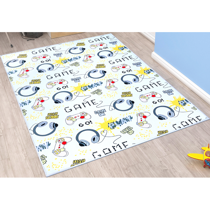 Tapete infantil p/ quarto menino macio e com antiderrapante com tema gamer game