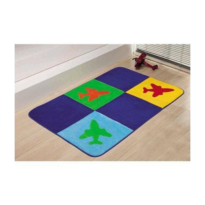 Tapete Infantil para Quarto de Menino Avião Azul Escuro