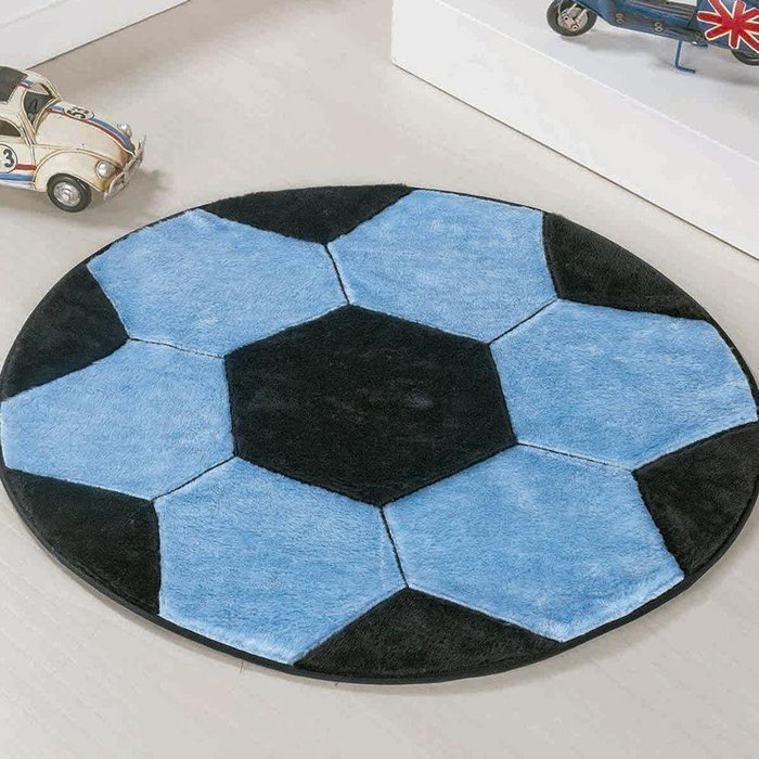 Tapete Infantil Pelúcia Decorativo Bola Futebol Várias Cores Premium Antiderrapante Cor (2) Azul E Preto