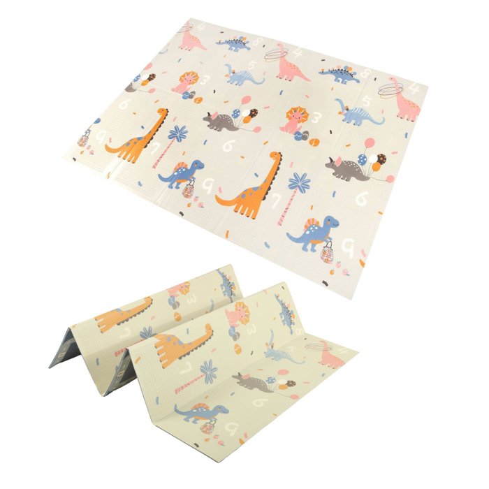 Tapete Infantil Tatame Dupla Face 150cm X 200cm Estrada Dinossauro Kapazi BEGE
