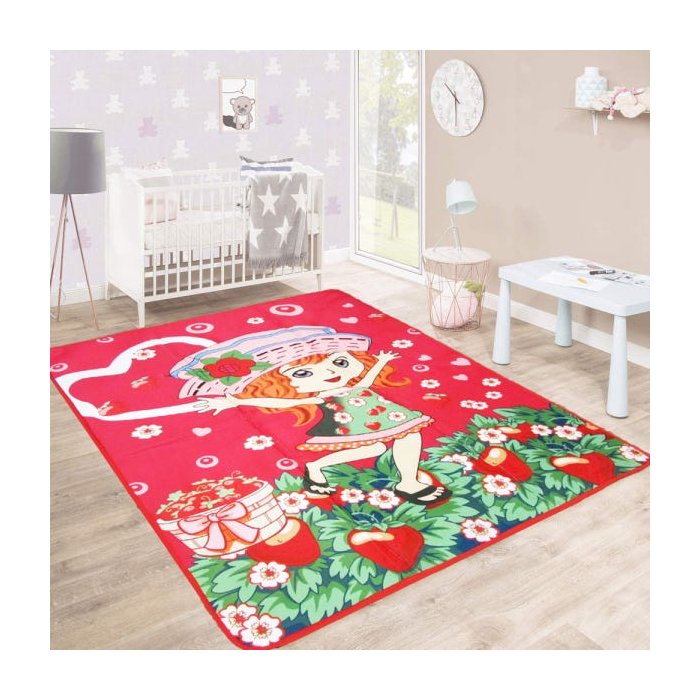 Tapete Infantil Veludo 3D Estampado Moranguinho 1,50Mx2,00M