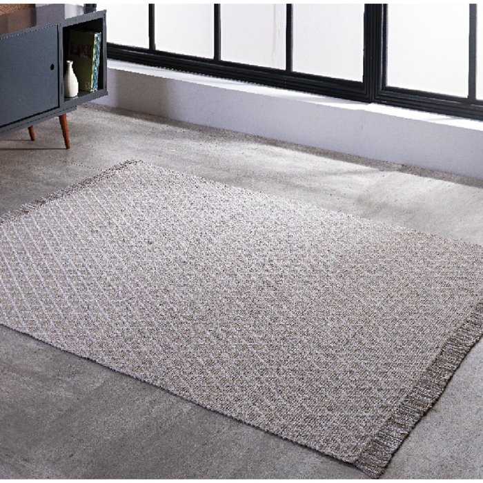 O tapete Kilim Adalli /Niazitex possui cores neutras e seus desenhos geométricos garantem mais modernidade ao ambiente. Eles são de fácil manutenção, possuem toque macio e são confeccionados em 100% algodão.