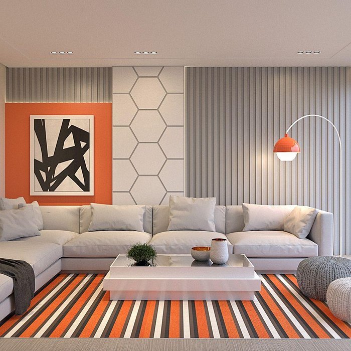 Tapete Listrado Fácil Limpeza Moderno Laranja 140 X 400 Cm