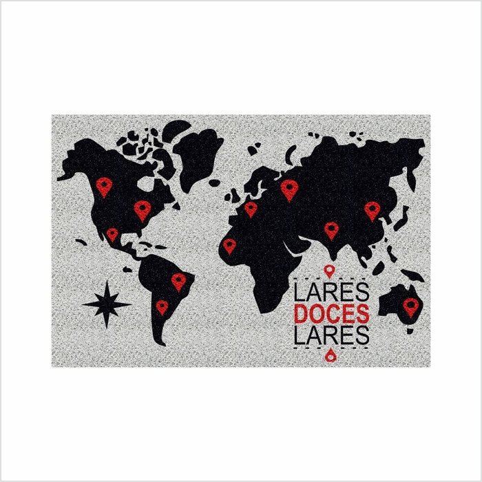 Capacho Vinil com fibras entrelaçadas e costado emborrachado com arte pinta em tinta vinílica especial.