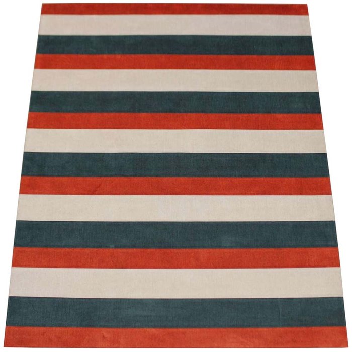 Tapete Moderno Lazio Linho Aveludado Geométrico Listrado Verde Laranja e Bege 1,50 x 2,00m