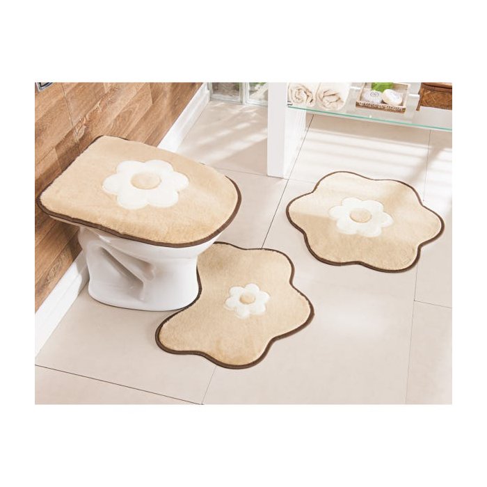 Tapete para Banheiro Bege Margarida Kit 3 Peças Antiderrapante