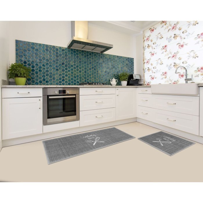 Tapete para Cozinha Cleankasa 50cm X 70cm Cooking Time Kapazi Cinza