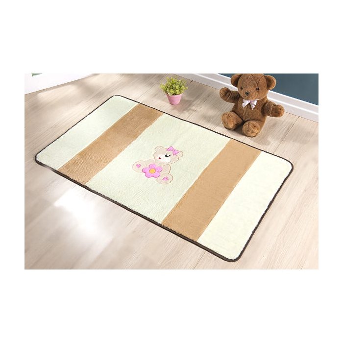 Tapete para Quarto de Bebê Menina Palha / Rosa Ursinha 1,20M x 74cm Antiderrapante
