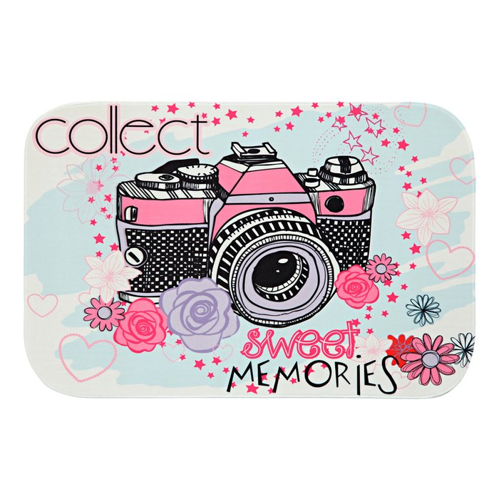 Tapete para Quarto Estampado Memories Rosa 60cm X 40cm - Base Antiderrapante Dourados Enxovais