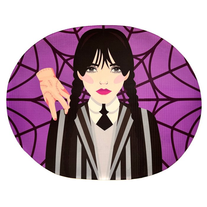 Tapete Para Quarto Estampado Oval Wandinha Roxo 80cm x 70cm - Base Antiderrapante DOURADOS ENXOVAIS