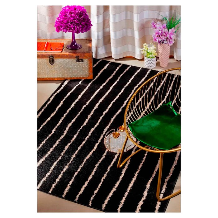 Tapete para Sala Art 150 x 200cm Estampado Desenho 12 Preto e Pérola