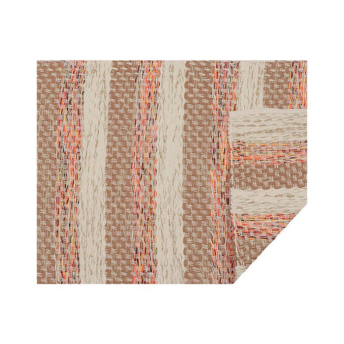 Tapete feito em tear manual Cores:cru, bege, laranja e vermelho Medida: 1,50 m x 1,50 m Composição: algodão e juta