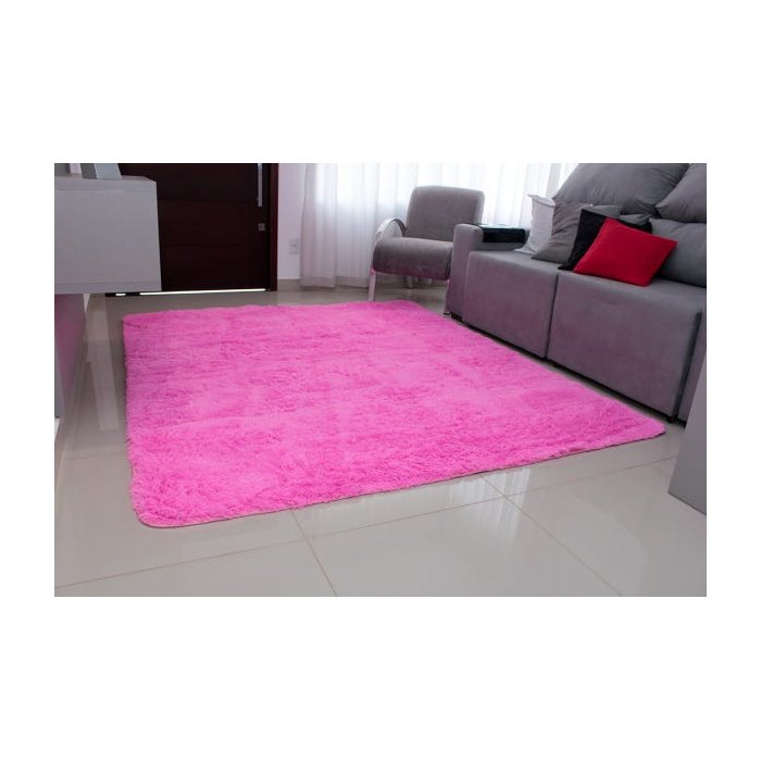 Tapete para Sala e Quarto Peludo Felpudo Macio 1,40x2,00 Rosa Liso Claro