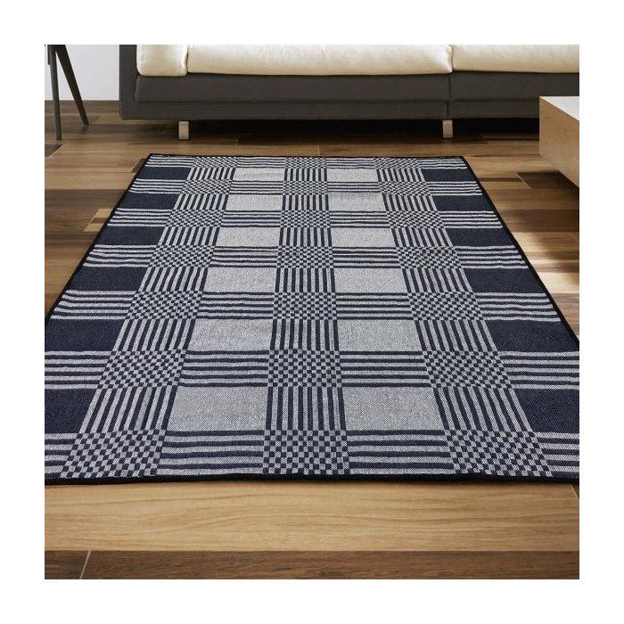 Tapete Para Sala, Desenho: Geométrico, Cor: Azul Marinho e Branco.