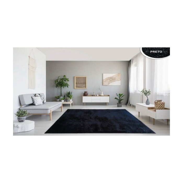 Tapete para Sala ou Quarto, 150 x 200cm, Pelo Baixo Macio, Base Antiderrapante, Fabricado No Brasil Preto