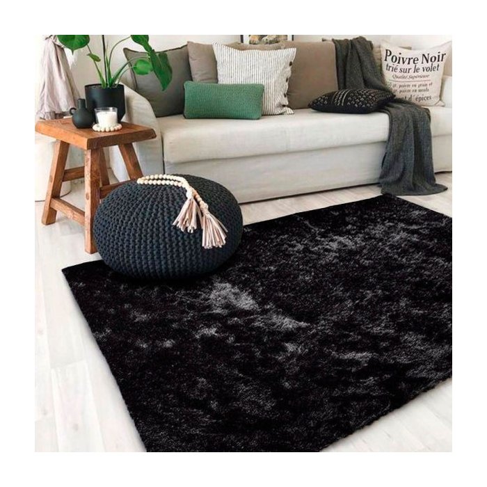 Tapete para Sala Peludo Fofinho 100x140cm Preto Casen