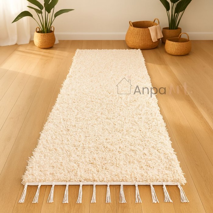 Tapete Passadeira 1,60x0,50 Algodão Felpudo Boho Cru Quarto