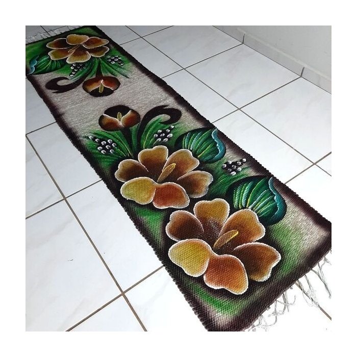 Tapete Passadeira Cozinha Avulsa 2Mt Pintado Flores Mostarda