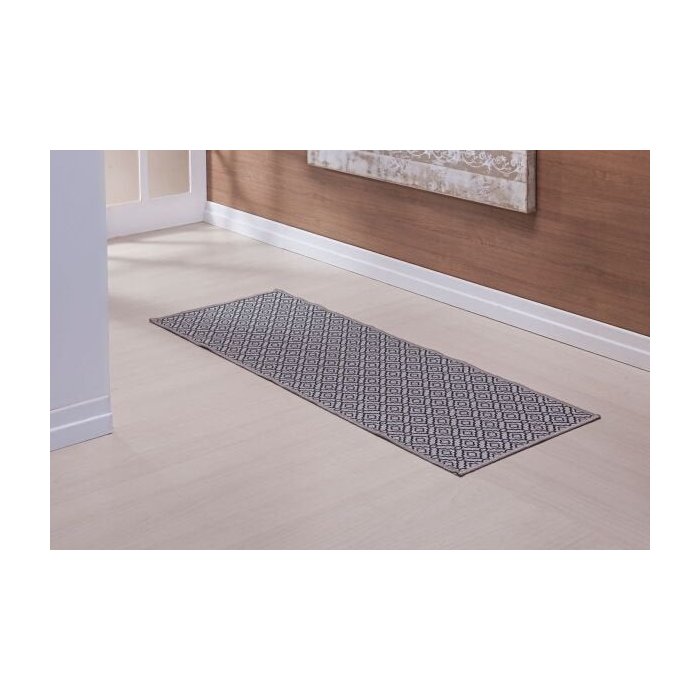 Tapete Passadeira Estampada Quarto e Sala Antiderrapante Jacquard 1,4M x 0,5M Cinza