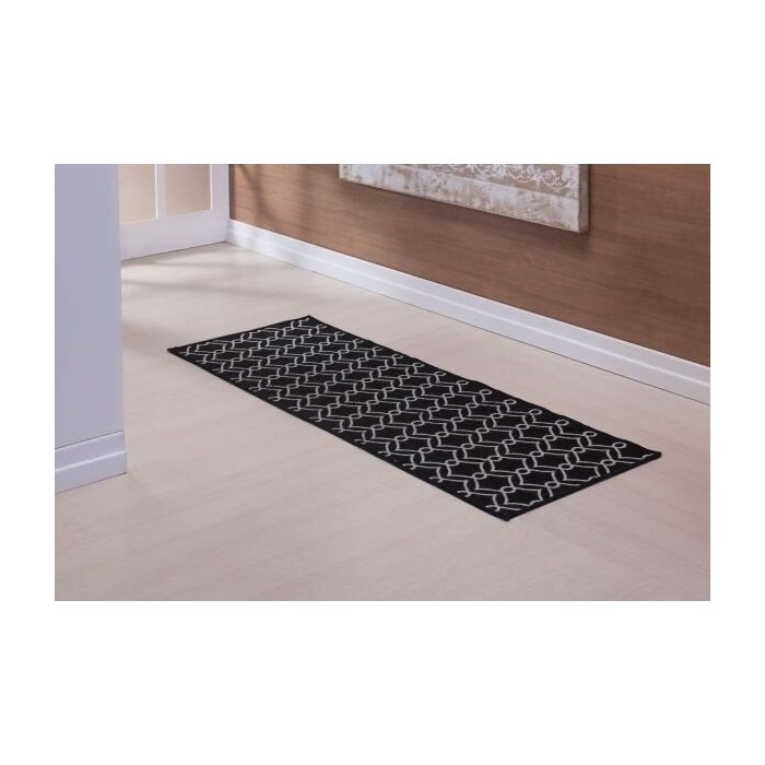 Tapete Passadeira Estampada Quarto e Sala Antiderrapante Jacquard 1,4M x 0,5M Preto