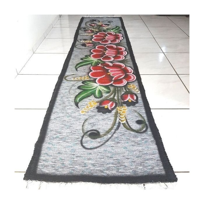 Tapete Passadeira Grande 3Mt Pintado À Mão Flor Vermelha 05