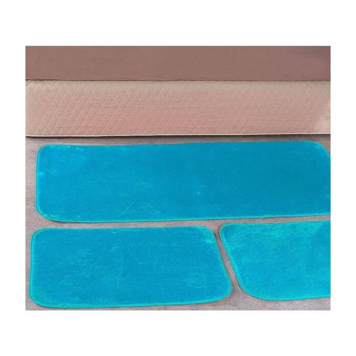 Tapete Passadeiras Pelúcia para Sala ou Quarto Azul Turquesa 3 Peças