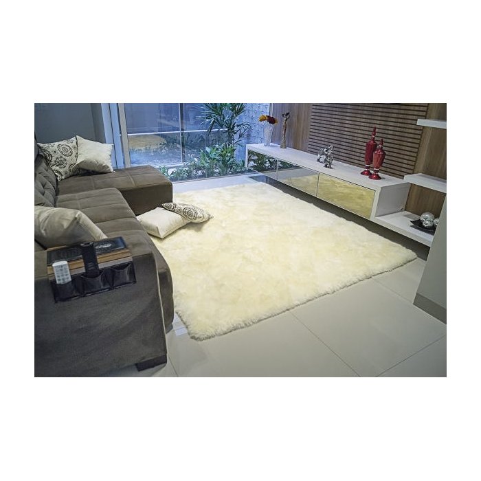 Tapete Pele de Carneiro Luxo 1,50M x 2,00M Palha