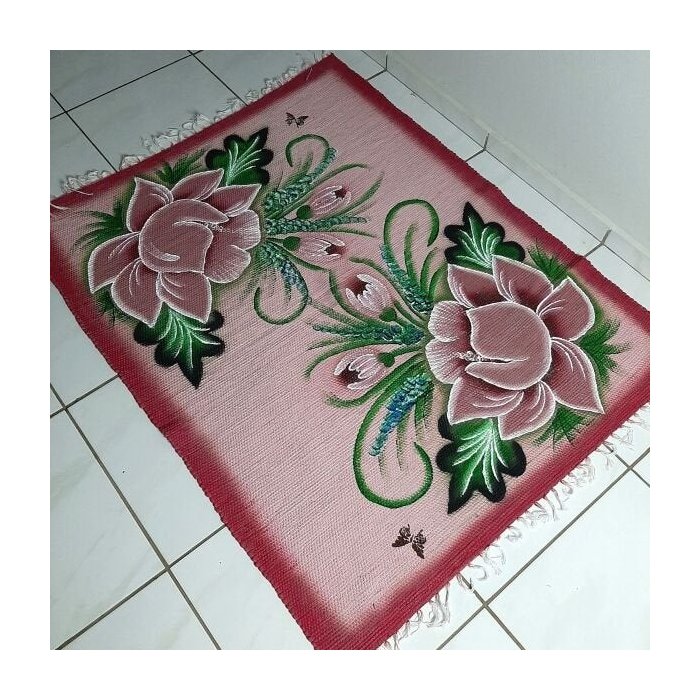 Tapetes artesanais, fabricado em tear com tecido de malha (algodão) e pintados à mão! Produto macio, podendo ser lavado na máquina.