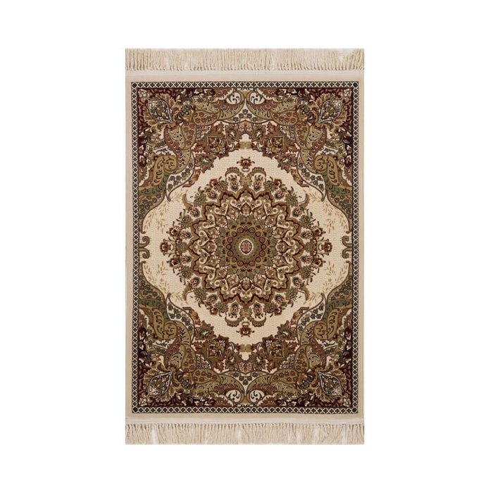 Tapete Persa Qom Bege com Detalhes Florais - 57x90cm