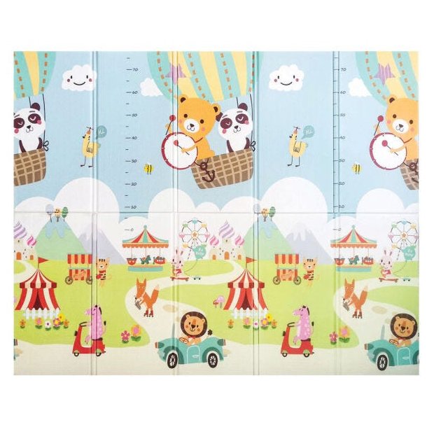 Tapete Portátil Dupla Face Passatempo Girotondo Baby colorido com bichos, circo e carros