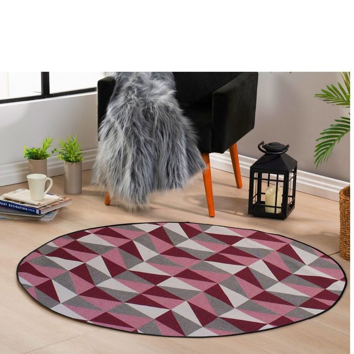 Tapete Redondo 1,40x1,40 Cami Casa Jacquard Antiderrapante:miami Bordo