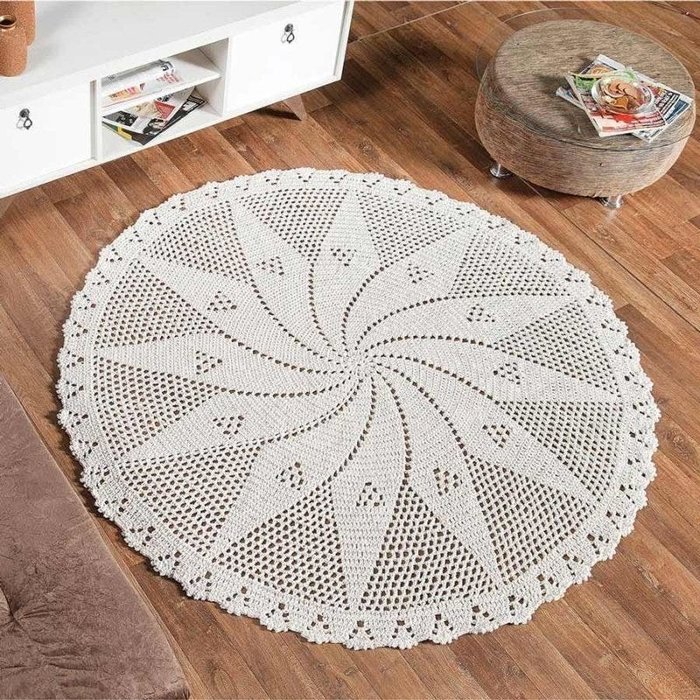 Tapete Redondo Avulso Vitória 1,40M Crochê 100% Algodão - Cru