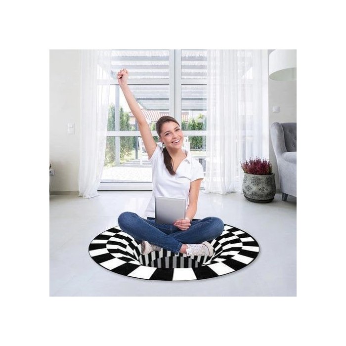 Decoração legal: a forma redonda mais o padrão de vórtice no Tapete irá fornecer-lhe uma sensação de ilusão de que parece vai preso no espaço interior, por favor, tenha facilidade para pisar nele, uma vez que é muito seguro definitivamente, mas será uma decoração que não só fazer o seu quarto parece único, mas também impressionou seus convidados.