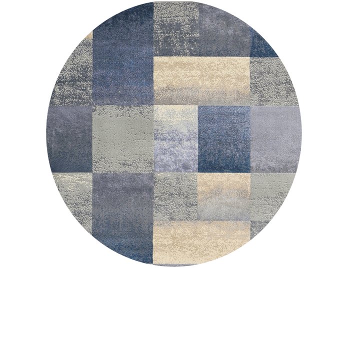 Tapete Redondo São Carlos Supreme Quadros 50/27 1,50 Diâmetro bege, azul e cinza