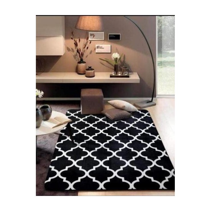 Tapete Relevo 1,00 X 1,40Mt Preto Geométrico Moderno P4