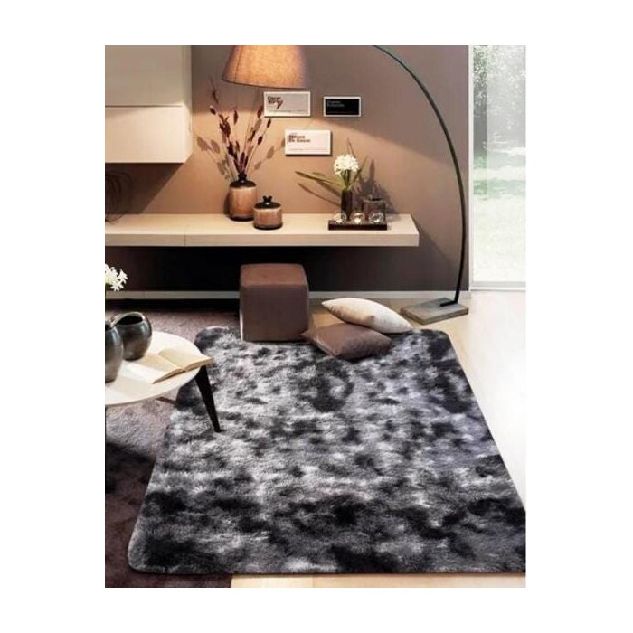 Tapete Sala 1,40x2,00 Cinza Mesclado Felpudo Peludo Shaggy