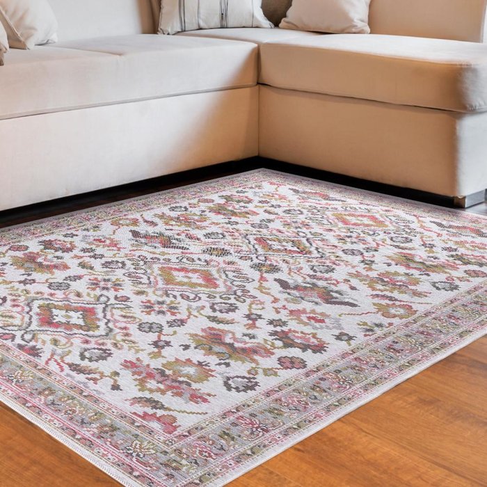 Tapete Sala 2 x 2,5 Metros Retangular Flor Cinza Vermelho