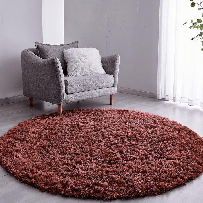 Tapete Sala Felpudo Peludo Redondo 60 Cm Marrom