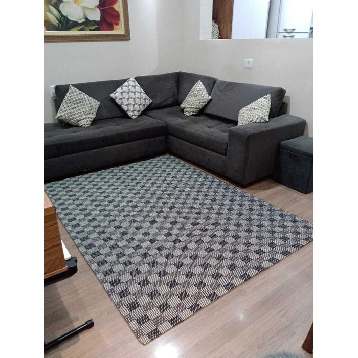 Tapete Sala Quarto 1,40x2,00 100% Algodão Quadrado Preto Quadrado Preto