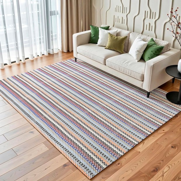 Tapete Sala Quarto Indiano Moderno Colorido Cru Geométrico 1,40 X 2,00 Antiderrapante Colorido Cru Geométrico