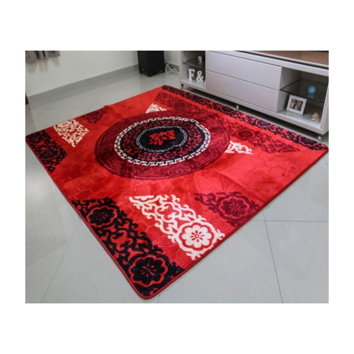 Tapete Sala Veludo 3D Estampado Oriente Vermelho 2,00Mx2,30M