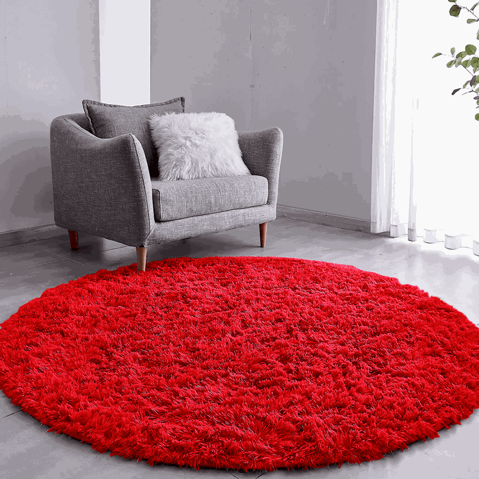 Tapete Saturs Shaggy Pelo Alto Vermelho Redondo 140 cm Tapete para Sala e Quarto