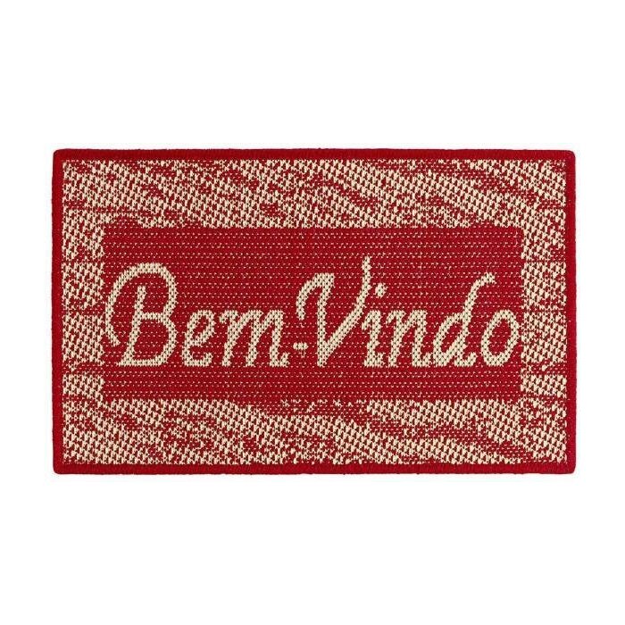 Tapete Sisal Entrada Porta 40X65Cm Bem Vindo Vermelho Lancer