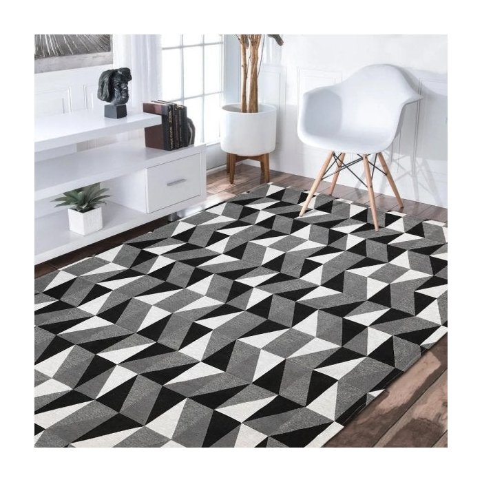 Tapete Trilho de Sala Antiderrapante Dubai Preto/Cru 1,32M x 2,50M