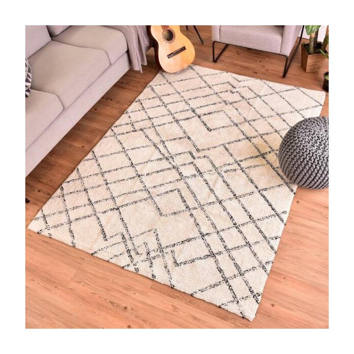 Tapete Tufted Geométrico Bege e Preto 100x150cm