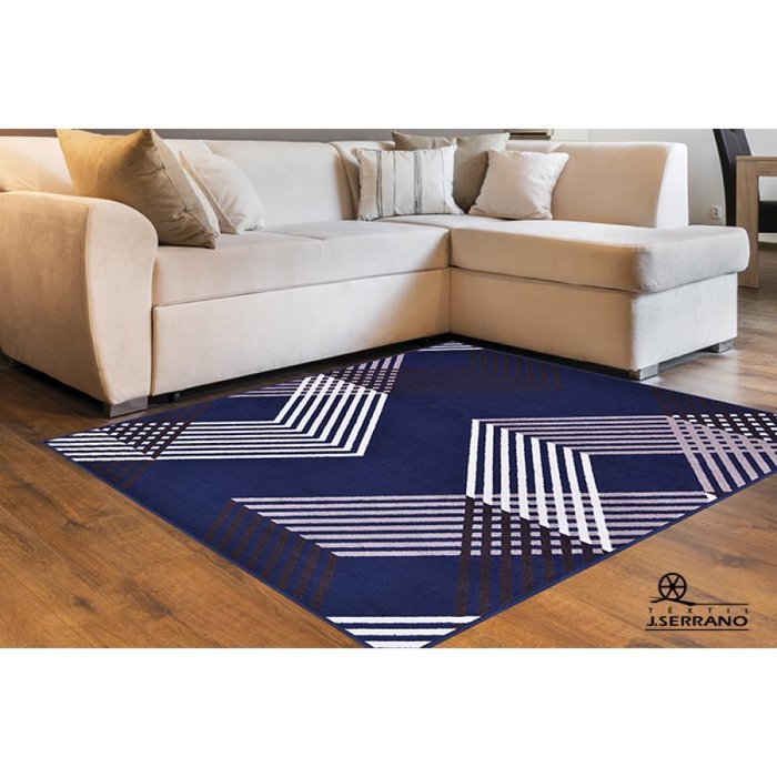 Tapete Veludo Com Linhas 2,50 x 3,00 Metros Azul Branco