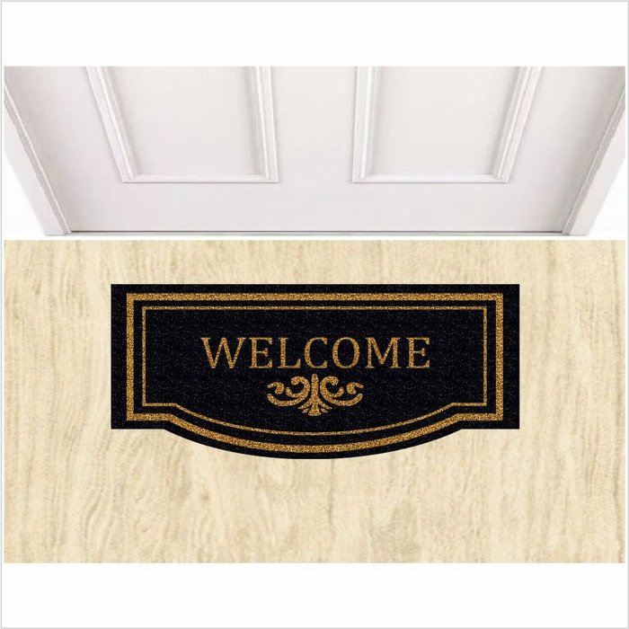 TAPETE WELCOME PRETO FORMATO MEDIDA PORTA.