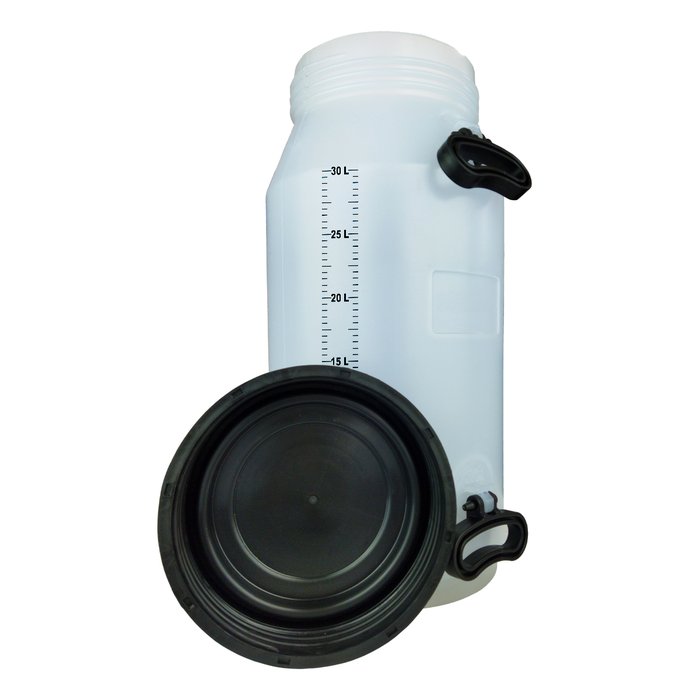 Tarro com capacidade para 30 litros, com tampa rosqueada, altamente resistente. Conta com alça tripla para facíl despejo e locomoção. Para armazenar leite e etc.