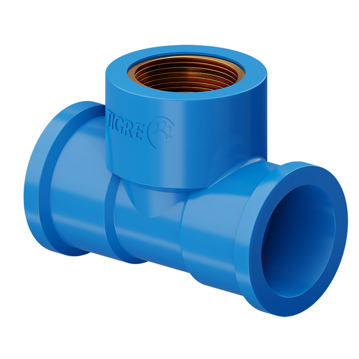 O Te Redução 90° Soldável com Bucha de Latão 32mm x 3/4" Azul da Tigre é uma peça essencial para sistemas hidráulicos, oferecendo uma solução prática e eficiente para realizar derivações em ângulo reto com redução de diâmetro. Possui uma extremidade roscável de 32mm e uma conexão soldável de 3/4".