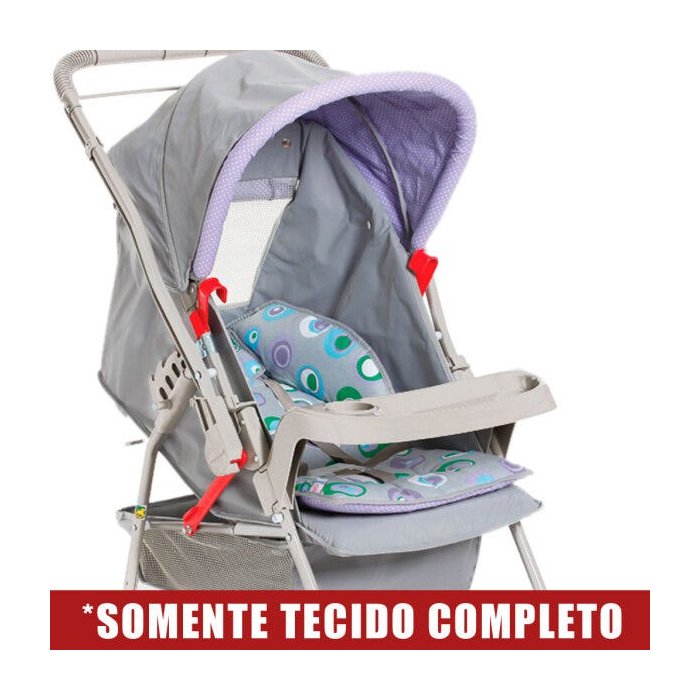 Tecido Completo para Carrinho de Bebê Galzerano Milano Reversível - Cinza/Lilás.